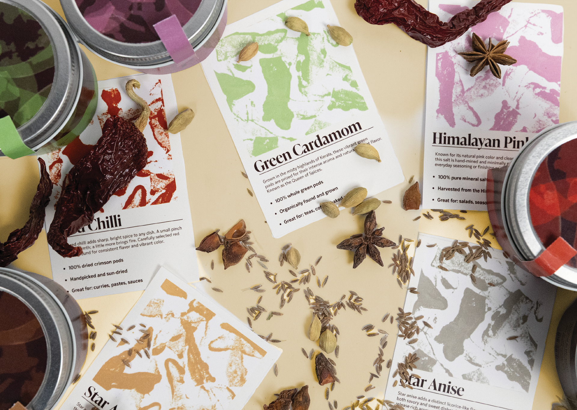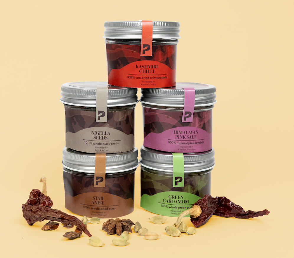 The final packaging reflects a system that highlights the individuality of each spice while presenting them as part of a cohesive collection.